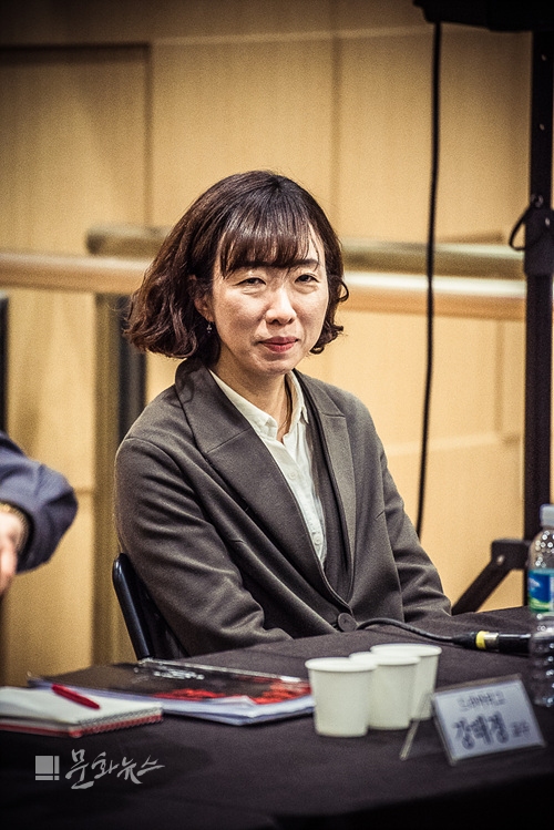 ㄴ 한태숙: 우선 이렇게 연습 장면을 공개한 게 거의 없었던 것 같다. 압력에 의해 강제로 하고 있다(웃음). 와주셔서 감사하다. 공연을 많이 했지만, 기자들 앞에서 이야기하는 건 굉장히 불편하다(웃음). 작업에 대해서 궁금한 점, 해석에 대한 것, 무대에 대한 것, 작업 속에서 강조되는 부분. 극대화되는 면에 관해 설명을 해드리고 싶다. 작가와 드라마터그를 소개하며 윤색과 드라마터그에 대해 이야기하고 싶다.
