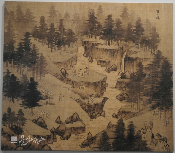 초기에는 실경산수라는 말에 어울리듯이 지도의 부분처럼 자세히 표현한 것이 특징이다. 이는 그 전시대에 유행했던 관념산수화와 반대되는 개념으로 우리나라 미술사의 획기적인 사건이라 하겠다. 또한 이에 따라 부수적인 효과가 나타났는데, 우리나라 사람들의 실제모습을 자연과 함께 그려내어 풍속화적인 느낌도 함께 준다. '백천교'그림을 보면 산수도 잘 나타나 있지만 물을 감상하는 선비들의 모습도 잘 나타나 있다. 환경 뿐만 아니라 그들이 어떻게 행동하는지 자세히 관찰하게 되는 것을 보면서, 옛날 사람들의 생활 방식을 생생하게 이해하게 된다.