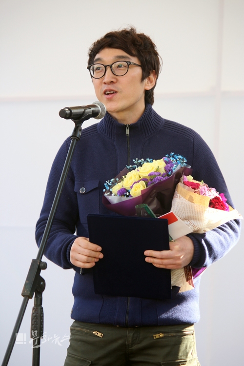 | ▲ 제3회 서울연극인대상 시상식에서 오세혁 작가가 소감을 남기고 있다. ⓒ 문화뉴스 양미르 기자 | ||