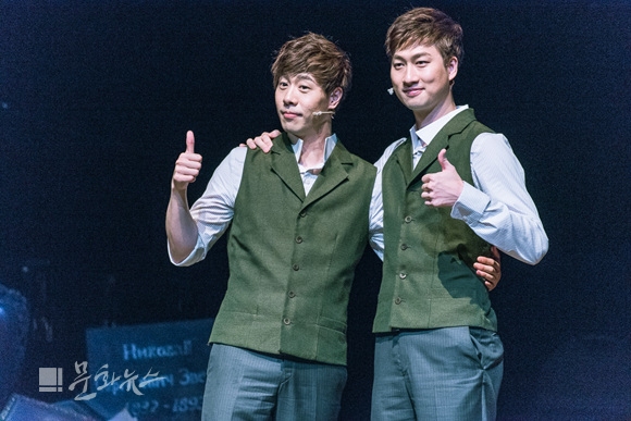 [문화뉴스] 뮤지컬 '라흐마니노프' 프레스콜 현장에서 박유덕과 안재영이 엄지를 올리고 있다.