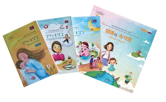 다문화 자녀를 위한 세계의 옛이야기 그림책 '엄마의 속삭임'이라는 제목으로 ▴필란독이 무사히 강을 건너는 법(필리핀) ▴하늘을 닮은 떡, 땅을 닮은 떡(베트남) ▴태양을 쏜 에르히 메르겡(몽골) ▴상아사 할아버지와 상아시 할머니(태국) ▴히말라야 눈사람 예티(네팔) 전래동화를 수록했다.