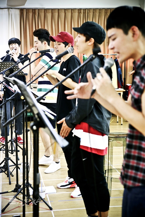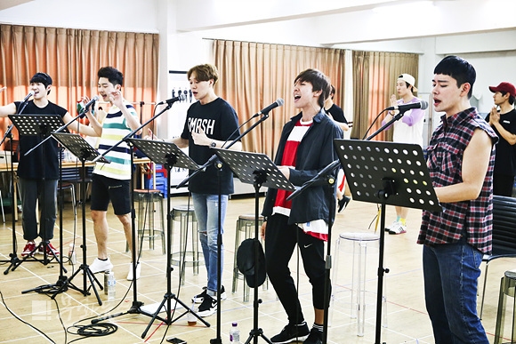 | ▲ 배우들도 유쾌한 분위기 속에서 극의 스토리와 노래, 안무를 익히기 위해 구슬땀을 흘리며 연습에 매진했으며, 재치 있는 스토리와 함께 대형 콘서트 현장을 방불케 하는 무대를 선보인다. |