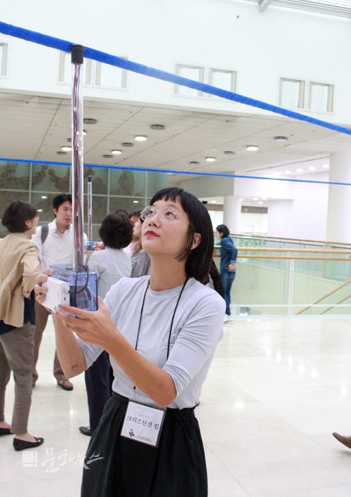| ▲ 태국 아티스트 크리스틴 선 킴이 '기술을 요하는 게임 2.0'을 시연하고 있다. | ||
