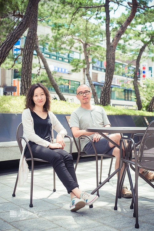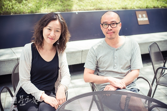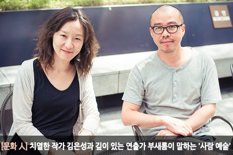 | 지난 달 26일 두산아트센터에서 연극 '썬샤인의 전사들' 김은성 작가(오른쪽)와 부새롬 연출가(왼쪽)를 만났다 | ||
