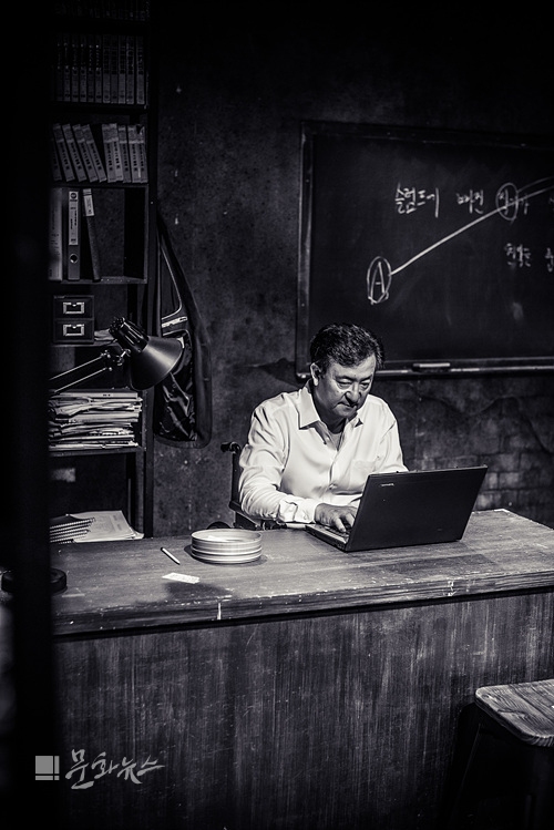 ㄴ 대부분 사람은 하나나 두 개의 인생을 산다. 가령 회사를 들어간다면 평생 회사에 있거나, 아니면 농사를 지으면 농사만, 장사하면 장사만 하고 살짝 중간에 다른 삶을 살거나 하는데 연기자의 경우에는 수없이 많은 인생을 산다. KBS 대하 드라마에선 삼국지의 김춘추 역도 하고, 뮤지컬 '에비타'에선 아르헨티나 대통령 역도 했다. 영화 '베테랑'에선 대기업 회장을, '극비수사'에선 잃어버린 아이를 찾는 아버지도 하고, 6.25 전쟁에서 특공대도 돼봤다. 내가 살아볼 수 있는 삶이 너무나 많다. 지금 '도둑맞은책'도 시나리오 작가다. 내가 언제 시나리오를 써보겠나(웃음). 그런 면에서 본다면 연기자는 정말 축복받은 인생이라 생각한다. 남들과 같은 인생을 살면서 여러 삶을 살아볼 수 있고, 그때마다 공부하며 배우는 것도 많다. 연기자란 직업은 정말 매력적인 것 같다. 또 대부분 사람은 감정을 숨기면서 사는데 연기자는 감정을 드러내면서 산다. 이번 작품도 욕을 엄청 많이 하는데 전 살면서 이렇게 욕을 많이 해본 적이 없다. 평소에 화를 정말 안내는 성격이라 평생에 욕을 한 두 번 해봤을까 말까 한데, 여기서는 정말 있는 대로 다 한다. 이런 역도 해보기 어렵다는 점에서 수도 없이 많은 경험을 연기를 통해 해보게 된다. '스프링 어웨이크닝'을 할 때도 (조)정석이가 내 아들이었는데, 정석이가 죽을 때 무덤에서 미친 듯이 혼이 빠져나가도록 6개월을 울었다. 언제 또 그렇게 울어보겠나. 그런 게 연기자로서 삶을 살 때의 매력이랄까 싶다(웃음). 항상 극한의 상황을 맛봐야 한다. 살면서 그 정도로 격한 감정을 느낄 일이 많지 않다. 조영락 역을 맡은 배우만 봐도 매 공연 울어야 한다.