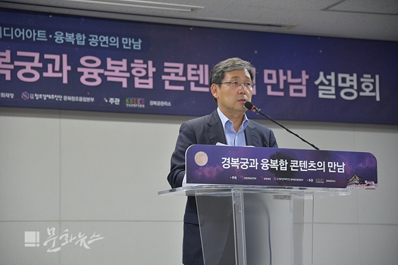 [문화뉴스] 윤태용 문화체육관광부 콘텐츠 산업실장이 '경복궁 야간기행 융·복합 콘텐츠'를 설명하고 있다.