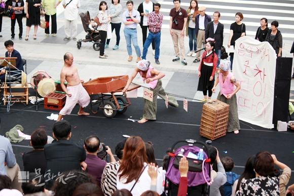 [문화뉴스] 30일 오후 서울시 종로구에 있는 세종문화회관 앞에서 '서울거리예술축제 2016' 협력 프로그램인 음악차력극 '굿차'가 열렸다.