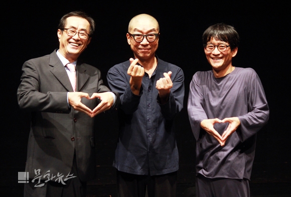 | ▲ (왼쪽부터) 마임이스트 유홍영, 유진규, 고재경이 포즈를 취하고 있다. | ||