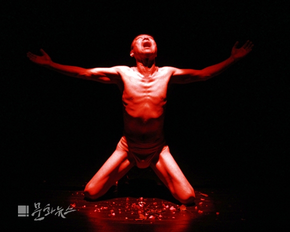 | ▲ 유진규 마임이스트가 작품 '꽃'을 선보이고 있다. | ||