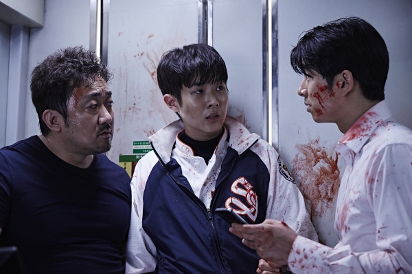 새로 탑승한 기차에는 살아남은 사람들이 9호차, 15호차로 나눠서 탑승하는데 함께 탑승한 석우(공유), 상화(마동석) 그리고 고등학교 야구부로 활동하는 영국(최우식)이 딸, 아내, 여자친구 진희(소희)가 있는 곳으로 가기 위해 좀비들과 맞서 나아간다. 상화(마동석)는 정의로운 인물로, 급박한 상황 속에서도 약자를 보호하는 용기있는 캐릭터이다. 이 과정에서 세 사람은 서로를 의지하고 이해하는 사이가 된다. 특히 개인주의였던 석우(공유)는 마동석의 도움을 받으며 차가운 사람에서 따뜻한 사람으로 변해간다.