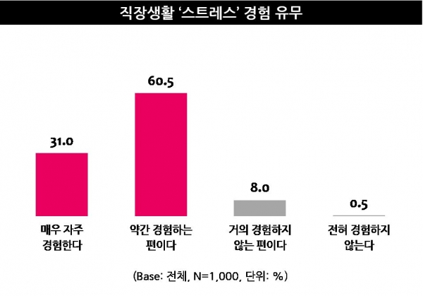 직장인 91.5%, "평소 직장생활에서 스트레스 받고 있다"
