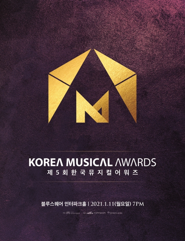'제5회 한국뮤지컬어워즈'는 오는 1월 11일(월) 오후 7시 블루스퀘어 인터파크홀에서 개최된다. 시상식은 네이버TV를 통해 온라인 생중계될 예정이다.