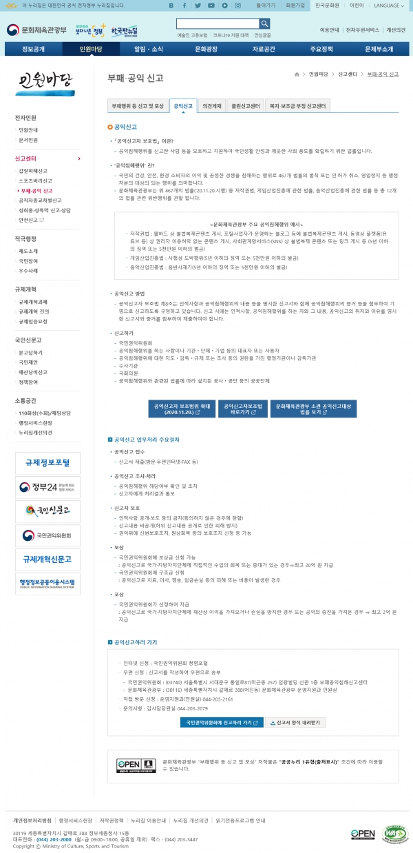 문체부 정책 담당자는 “저작권 분야 침해에 대한 공익신고가 도입됨에 따라 빈틈없는 침해 대응체계를 구축하고 공정한 이용환경을 만들어 창작자의 권익이 확대되기를 기대한다.”라며, “국민 여러분이 많은 관심을 갖고 적극적으로 공익신고를 해주시길 바란다.”라고 밝혔다.