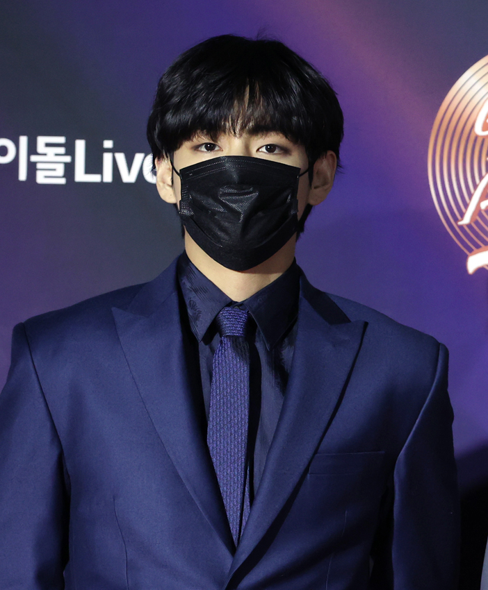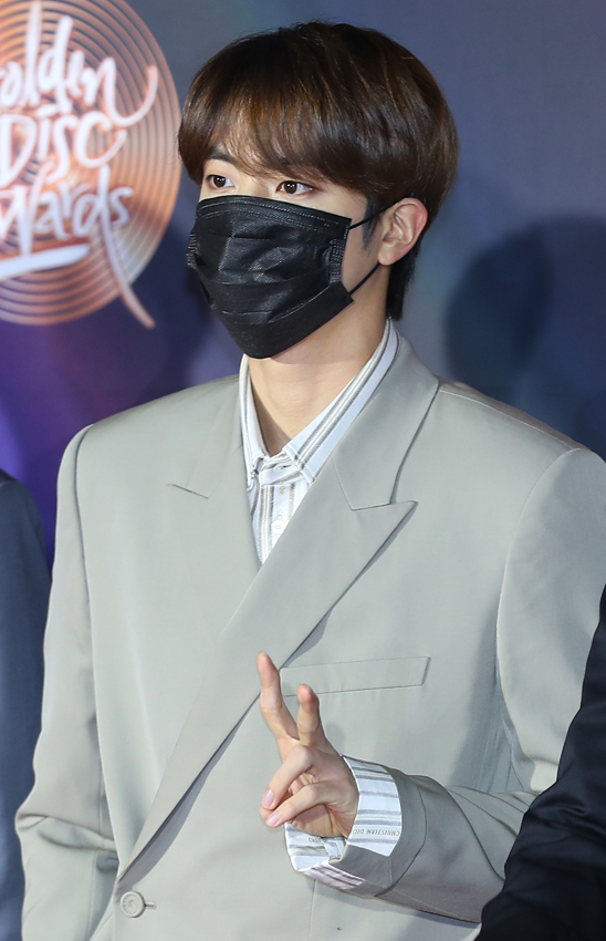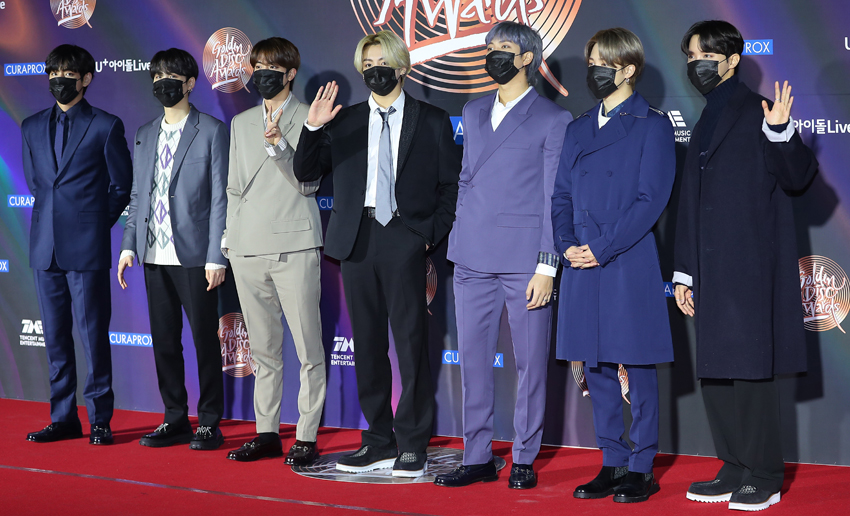 - [MHN포토] 세븐틴 '마스크로 가릴 수 없는 멋짐'(골든디스크)