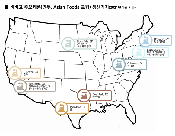 CJ제일제당은 현재 미국 서부(캘리포니아), 동부(뉴욕·뉴저지), 중부(사우스다코타 등) 등에 생산기지를 두고 있다.