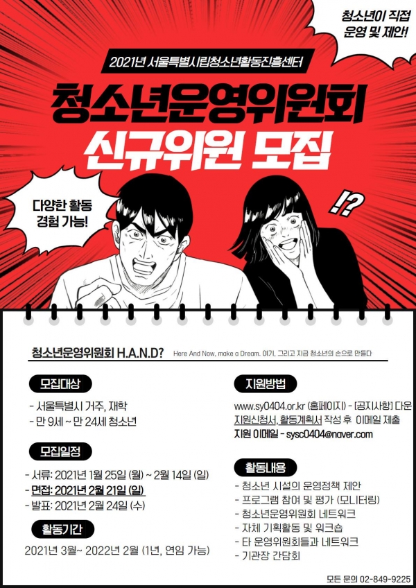 - ‘서울시 어린이·청소년참여위원회’ 위원 및 ‘서울시 청소년의회’ 의원 모집(~2.23.)