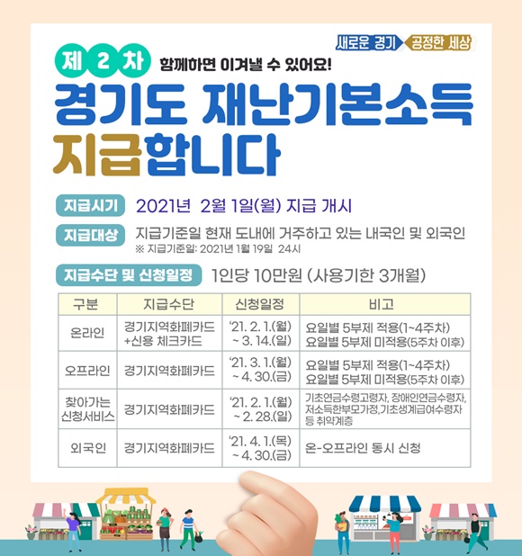경기도가 시행하는 '2차 경기도 재난기본소득'의 지원 대상 및 지급내용, 신청 방법까지 자세히 알아보자.
