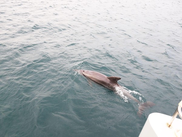 제주의 푸른 바다가 한눈에 들어오는 가슴이 탁 트이는 풍경을 보며 여유롭게 요트에서 시간을 보내다 주변에서 웅성웅성 거리는 소리가 들리면 돌고래가 출몰 했다는 것을 확인 할 수 있게 된다.