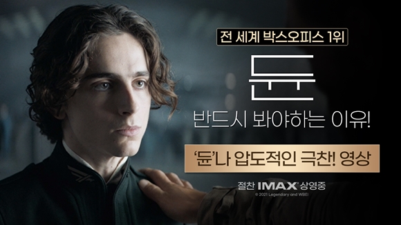 '듄'은 월드와이드 흥행 수익 2억 2천만 달러를 돌파하고 국내에서도 관객들의 추천 열풍에 힙입어 입소문 흥행 행진을 이어가고 있다. 전국 극장에서 2D와 수퍼4D, 4DX, 애트모스, 돌비비전, IMAX 포맷으로 절찬 상영 중이다.