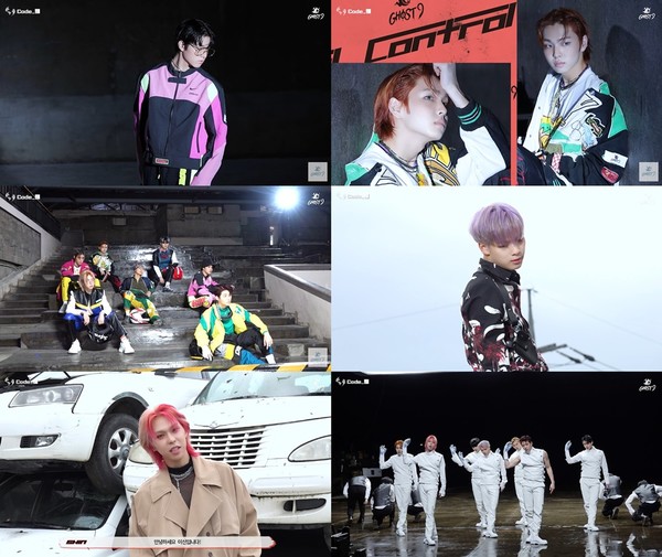 지난 6일에는 타이틀곡 'Control' 뮤직비디오 촬영 비하인드 영상이 공개됐다. 고스트나인은 폐차장에서 개인 촬영에 열중하며 재킷 촬영 때와는 또 다른 비주얼을 보여줬다.