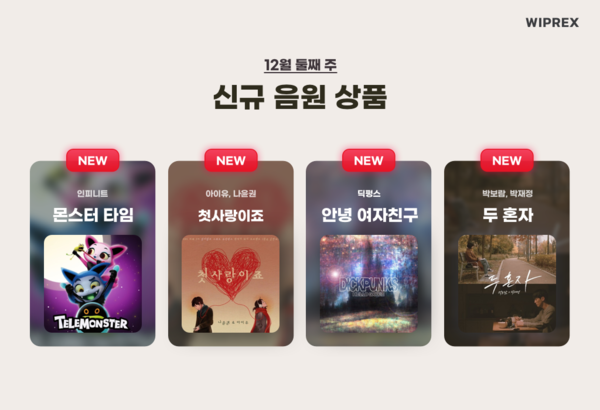 [문화뉴스] 음원 수익 공유 플랫폼 위프렉스가 12월 둘째 주 신규 음원 상품으로 아이유와 나윤권이 함께 부른 ‘첫사랑이죠’의 음원 상품을 공개했다.