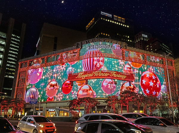 신세계 백화점은 ‘Magical Winter Fantasy’라는 주제로 서울 중구 회현동에 위치한 본점 건물 외벽에 대형 스크린을 활용해 미디어 파사드를 선보인다.
