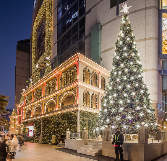 본점 외벽에는 100m 이상의 파사드를 3층 높이로 새로 구축해 트리와 조명으로 장식하면서 크리스마스 거리가 연출됐다.