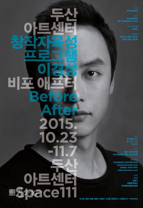 2010년에 도시 공간의 의미를 담은 연극 '당신의 소파를 옮겨 드립니다'로 동아연극상 새개념 연극상을 수상한 바 있는 이경성은, 이어 2014년에는 두산연강예술상을 수상하며, 두산아트센터와의 연을 이어갔다. 이번 작품 '비포 애프터 Before After'는 돌이킬 수 없는 사건 이후 일상의 기억과 경험을 소재로 우리 삶과 사건의 관계를 살펴보는 연극이다.