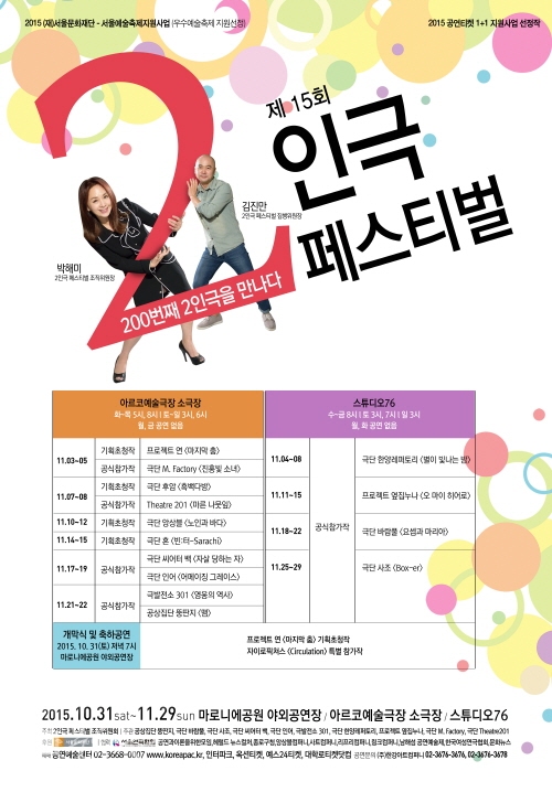 '인간과 인간 사이의 커뮤니케이션'에 대한 연극적인 탐구를 목적으로 시작된 한 축제가 있다. 바로 '2인극 페스티벌'이다. 2000년도에 시작돼 14회에 걸쳐 그 명맥을 이어온 이번 페스티벌은 "200번째 2인극을 만나다"라는 의미 있는 주제로 제15회를 맞이한다. 축제는 지난 31일 마로니에공원 야외무대에서 열린 개막식으로 그 시작을 알렸고, 이번 달 29일까지 한국공연예술의 중심인 아르코예술극장 소극장 및 스튜디오76에서 한 달 동안 진행된다. 공식참가작 10작품, 기획초청작 4작품, 특별참가작 1작품, 총 15작품이 참여하는 이번 축제를 통해 2인극의 진정한 매력을 알 수 있는 기회가 되길 바란다. 그러나 2인극의 매력을 조금 먼저 알고 싶은 이를 위해 준비했다. 우리를 사로잡는 2인극의 결정적인 매력이 무엇일까?