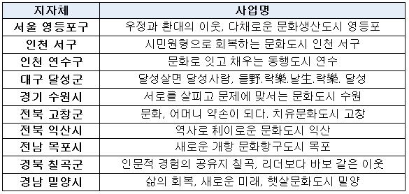 이번에 제3차 예비 문화도시로 지정된 지자체 10곳은 주민 누구나 참여할 수 있는 문화거점을 만들고 주민들이 직접 기획하고 실현하는 문화도시를 구상하는 데 역점을 두었다. 특히 주민들이 가까운 곳에 직접 문화예술인들을 만날 수 있는 공간을 마련하고, 주민들이 작품 제작 과정에도 참여할 수 있도록 해 주목을 받았다.