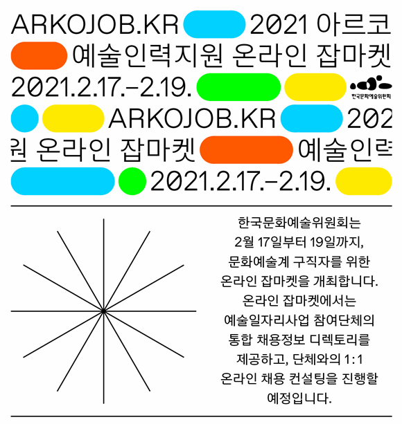 문화예술계 온라인 취업 박람회 '2021년도 아르코 예술인력지원 온라인 잡마켓' 개최