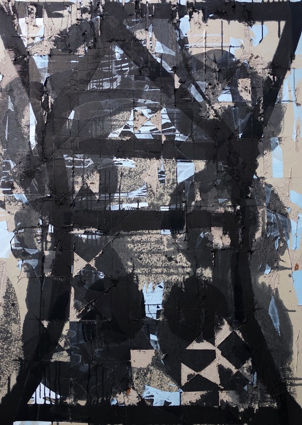 유화작품 ‘일곱개의 별’ 시리즈에서 캔버스 위에 안료를 바르고 나이프를 이용해 긋고 파내는 행위를 반복했던 작업은 이제 골판지 위에 즉흥적으로 나이프로 긋고 긁어내는 작업을 통해 여러 겹의 다양한 층위를 드러내는 화면으로 바뀌었다.