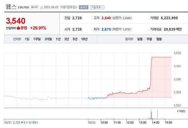 웹스(196700)도 상한가를 달성했다.