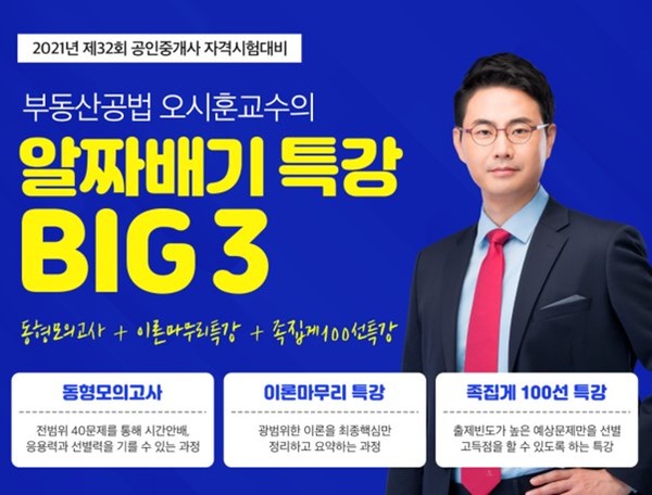 노원공인중개사학원 랜드프로 노원학원이 2021 공인중개사 시험대비 공법 오시훈 교수의 ‘알짜배기 특강 BIG3’를 실시한다고 전했다.