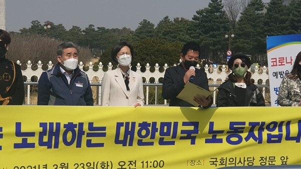 이 위원장은 "가수들은 노래를 좋아하고 사랑해서 무대에 오르지만 노래를 업으로 삼는 생활인이다. 그러나 노래하는 곳마다 일일이 근거 자료를 만들 수 없어 임금체불 등의 불리한 상황이 생겨도 이를 입증할 만한 서류가 없어 손해를 보는 경우가 많다. 더욱이 지금과 같은 코로나19 시국에서 활동무대까지 사라져 생계마저 위협받고 있다. 이와 더불어 가수들이 노동자임을 입증할 만한 근거 부족으로 재난지원금조차 신청할 수 없는 이중고에 시달리고 있다"고 토로했다.