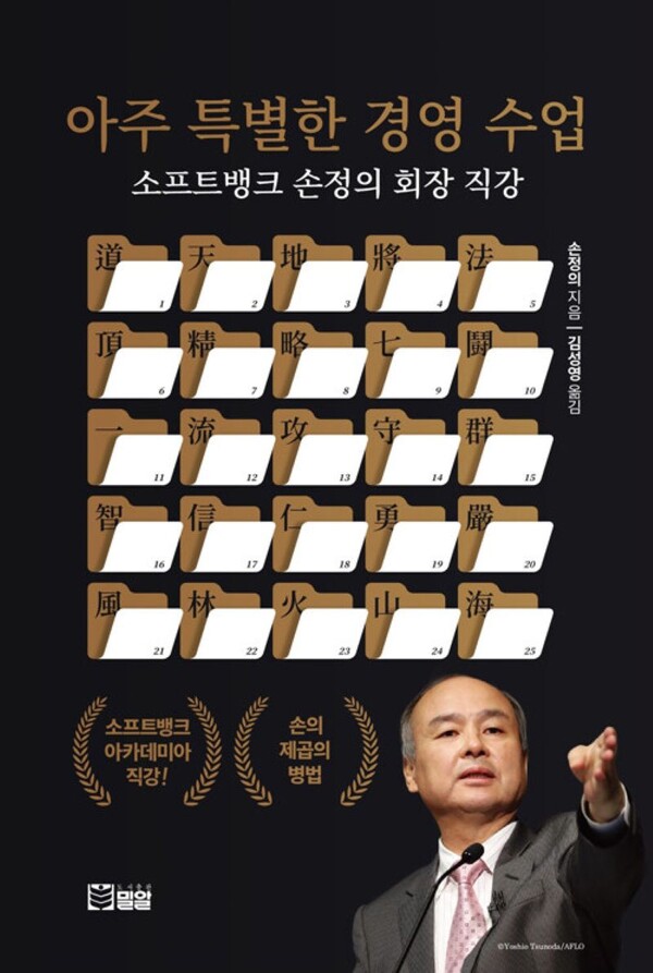 '아주 특별한 경영 수업'은 손정의만의 경영 지도를 소개한다. '도(道)·천(天)·지(地)·장(將)·법(法)', '정(頂)·정(情)·략(略)·칠(七)·투(鬪)' 등 25개 핵심 한자를 중심으로 그의 경영 전략을 풀어낸다.