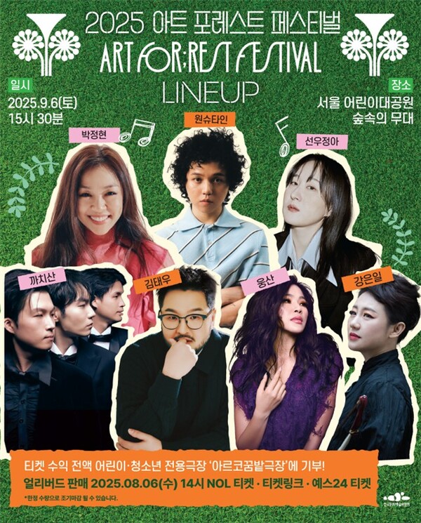 아트 포레스트 페스티벌은 국내에서 유일하게 예술 후원을 주제로 진행되는 문화예술 축제로, 공연 수익금 전액이 예술 지원 기부금으로 쓰인다. 올해는 총 세 차례 열리며, 9월 13일 서울 대학로 마로니에 공원, 9월 21일 경기 광주 뉴서울CC에서도 이어질 예정이다.