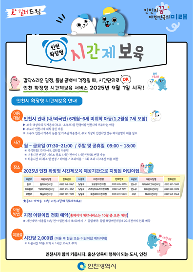 유정복 시장은 “아이 키우기 좋은 도시 인천을 만들기 위해 부모들의 부담을 덜어주는 다양한 지원을 이어가겠다”며 “모든 가정이 안심하고 아이를 맡길 수 있는 환경을 조성해 나가겠다”고 강조했다.