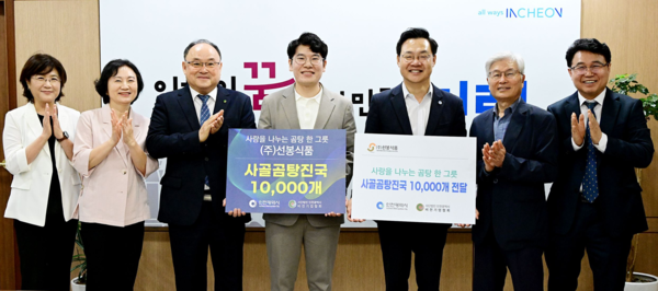 문화뉴스 김인환 기자 = 인천광역시와 ㈜선봉식품이 추석을 맞아 결식 우려가 있는 어르신들을 위해 1만 인분의 사골곰탕을 후원했다. 인천시청에서 열린 전달식에는 하병필 행정부시장, 고종국 대표, 인천비전기업협회 관계자들이 참석해 나눔의 의미를 함께 나눴다.
