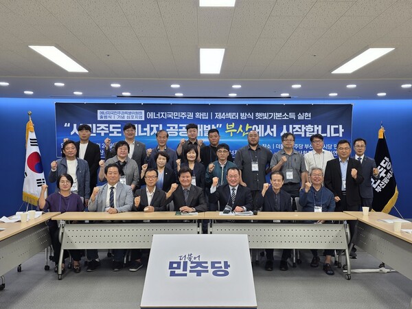 더불어민주당 부산시당은 24일 오전 부산시당 민주홀에서 「에너지국민주권특위」(위원장 최형욱, 공동위원장 김대오) 출범식을 열고, ‘부산형 시민에너지회사’ 주도 방식의 지역 에너지 공공개발을 「부산 제1호 에너지기본소득형 정책사업」으로 추진한다고 밝혔다. 이는 이재명 정부의 에너지기본소득 정책을 사회적경제기업이 주관하는 ‘제4섹터형 공공개발’ 방식으로 실현, 에너지민주주의 시대를 열겠다는 목표를 담고 있다.