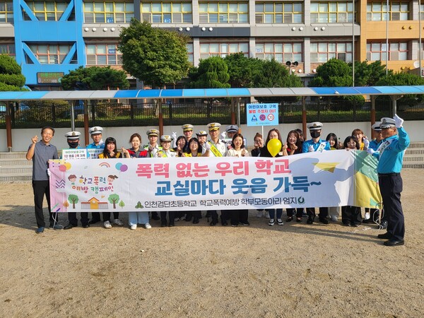 문화뉴스 김인환 기자 = 10월 1일, 인천검단초등학교에서 학교폭력예방학부모동아리 주관의 학교폭력 예방 및 교통안전 캠페인이 실시됐다. 이번 캠페인은 검단초 후문과 가현문 주변 통학로에서 진행됐으며, 교직원과 학생자치회, 학부모, 지역 의원과 경찰, 서구청 관계자 등 50여 명이 함께했다.