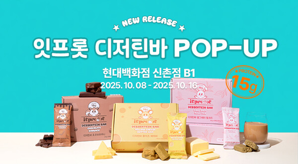 (문화뉴스 백현우 기자) '맛있는 건강 관리'를 목표로 하는 디저트 프로틴 전문 브랜드 '잇프롯(itprot)'이 오는 10월 8일부터 16일까지 현대백화점 신촌점 지하 1층 식품관에서 브랜드 최초의 팝업스토어를 연다고 밝혔다.