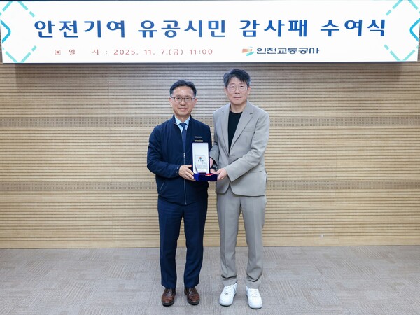 이 같은 공로로 인천교통공사는 최창배 형사팀장에게 감사패를 전달했다.