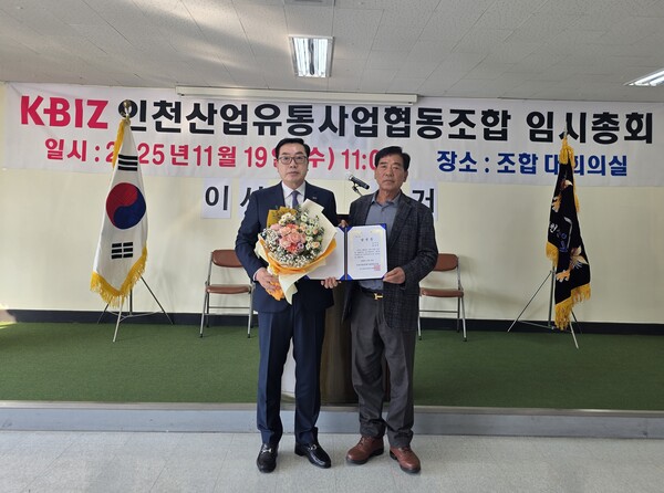 문화뉴스 김인환 기자 = 4735개 업체가 사업을 영위하고 있으며, 상주인구가 약 1만5천 명, 유동인구가 2만2천명에서 5만 명으로 추산되는 국내 최대 산업물류유통복합단지 중 하나인 인천산업유통사업협동조합은 19일 오전 11시 조합 회의실에서 열린 임시총회에서 황현배 후보가 단독 출마, 조합원 전원의 만장일치 추대로 신임 이사장에 선출됐다고 밝혔다.